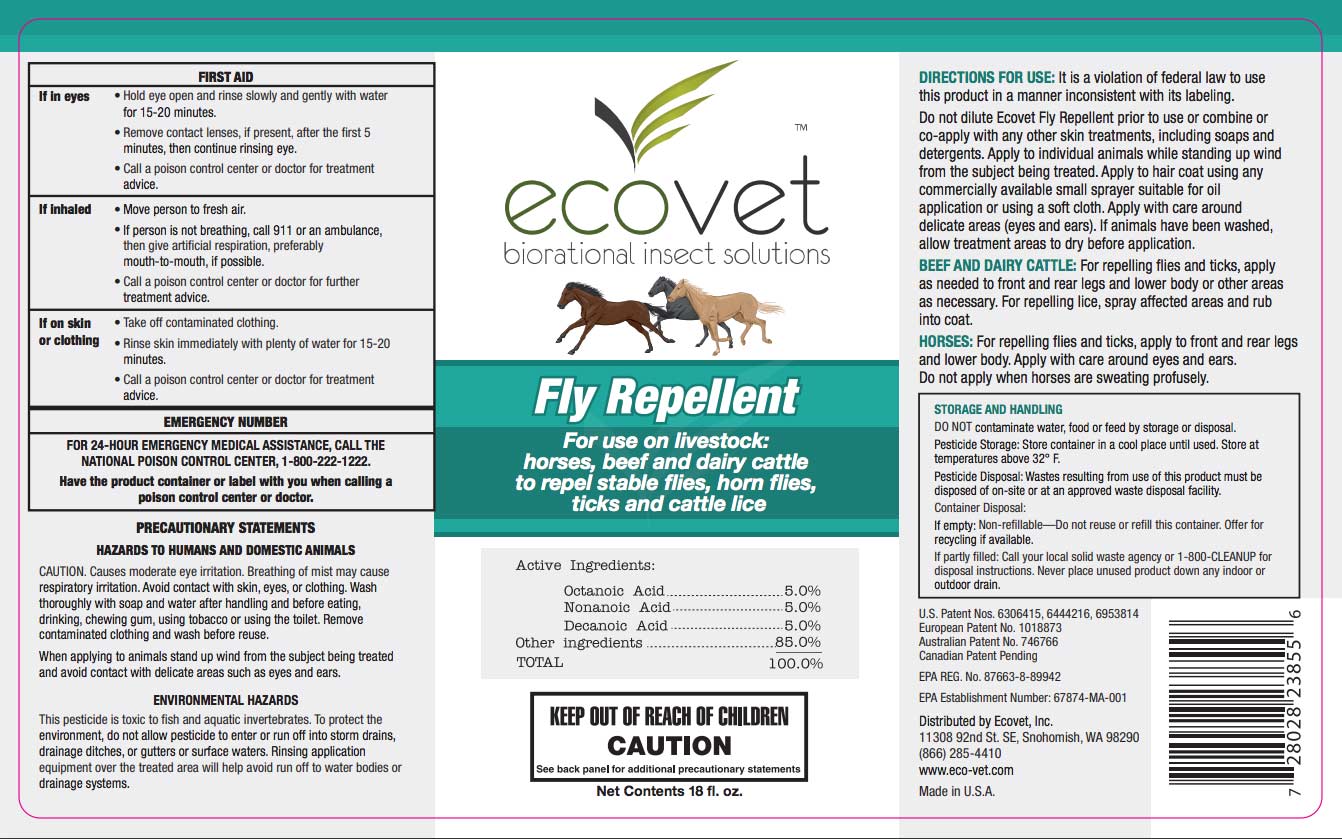 A truly new alternative to traditional fly products containing pyrethrins or essential oils. Ecovet is a proprietary mixture of natural food-grade fatty acids and silicone oil. Ecovet creates a "zone of repellency" that prevents pests (flies, gnats, mosquitoes, ticks, lice and more) from landing on your equine friend.